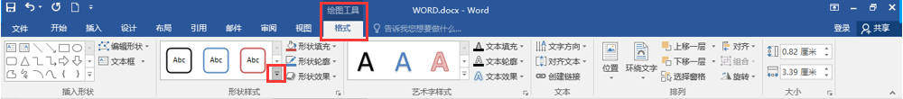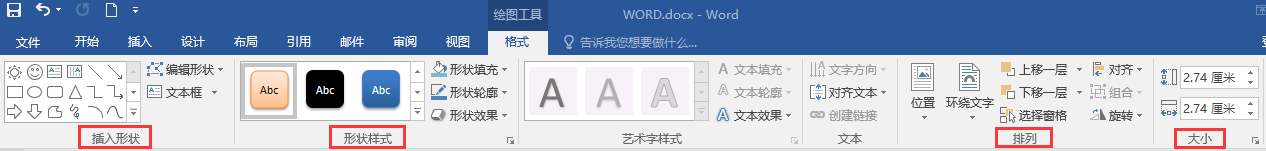 选中已创建的形状,在出现的“绘图工具”选项卡中,可通过“插入形状”、“形状样式”“排列”“大小”等命令组对形状进行编辑,其中“形状样式”“排列”和“大小”命令组的操作方法可参考“编辑文本框”小节和“编辑图片”小节的相应内容。