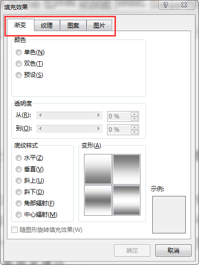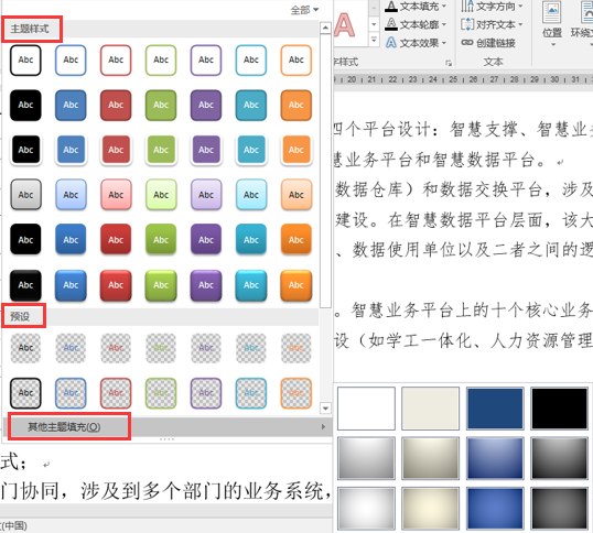 单击“形状填充”命令,可为文本框设置各种填充效果 ,如填充颜色、填充图片、填充渐变和纹理效果,也可通过“无填充颜色”取消文本框内的填充效果。