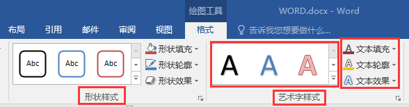 选中已创建的艺术字,在出现的“绘图工具”选项卡中,可通过“形状样式”和“艺术字样式”命令组对艺术字进行样式和效果的编辑,操作方法可参考“编辑文本框”小节相应内容。