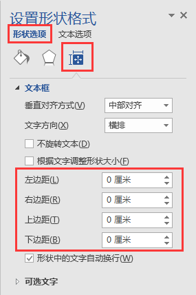 (4)单击“形状样式”命令组右侧的对话框启动器,打开“设置形状格式”窗格,单击“形状选项”→ “布局属性”→ 文本框,设置内部边距均为0,如图1所示。参考样张调整形状的位置。