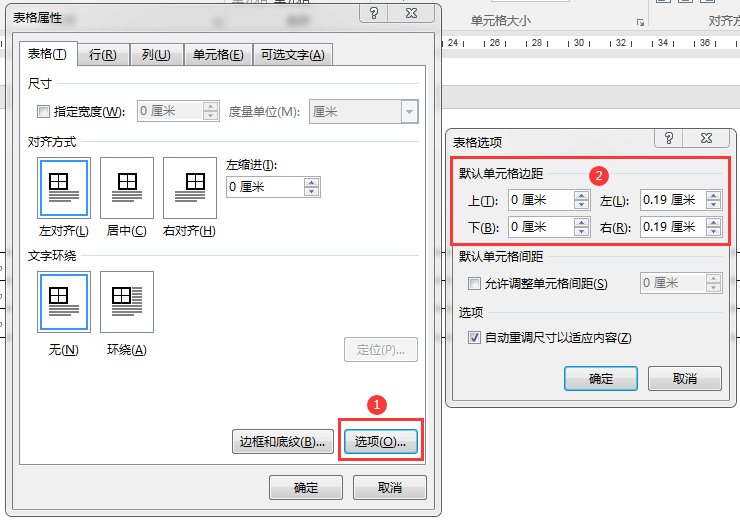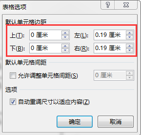 (2)选中横线下方整个表格,单击“表格工具 ”→“布局 ”选项卡→“对齐方式”命令组,单击“单元格边距”命令(图3) ,在打开的“表格选项”对话框(图4) 中,设置左右内部边距为0。