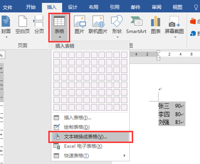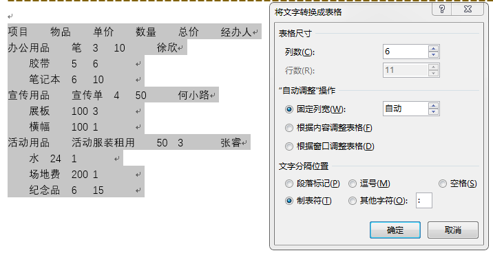 (2)选中横线下方文字,单击“插入”→“表格”命令组→“表格”命令,在下拉列表中选择“文本转换成表格”命令(图2),在打开的“将文字转换成表格”对话框(图3)中保持默认值,单击“确定”。
