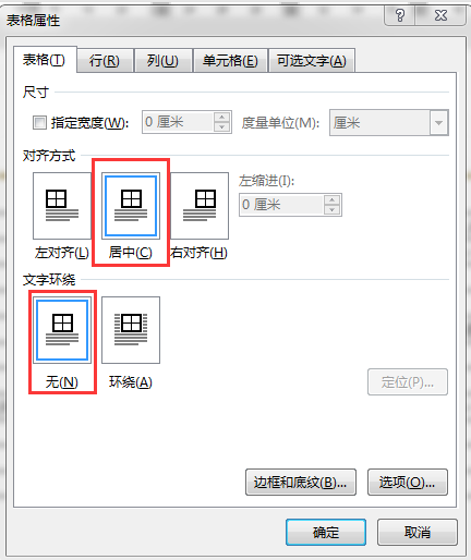 (3)单击“表格工具 ”→“表 ”命令组→“属性”命令(图4),在打开的“表格属性”对话框(图5)设置表格“对齐方式”为“居中”,“文字环绕”为“无”。
