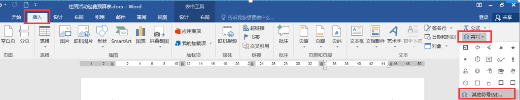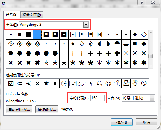 (2)在第2行第4列的单元格中,将鼠标定位在“团委”前,单击“插入”→“符号”→“其他符号”(图1),在弹出的“符号”对话框(图2)中,选择“字体”为“Wingdings2”,在“字符代码”框内输入163,单击“插入”按钮。复制该符号至“赞助”前。