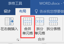 (1)在横线上方表格中,选中第一行的各单元格,单击“表格工具 ”→“布局 ”选项卡→“合并”命令组→ “合并单元格”命令(图1),将其合并为一个单元格,选中文字,单击“开始 ”→“字体 ”命令组设置其格式为:楷体、小二、加粗。再选中第5行的第2至4列的单元格,同样的方法进行合并。