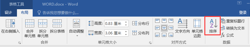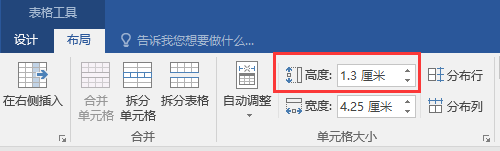 单击“表格工具 ”→“布局 ”选项卡→“单元格大小”命令组→ “分布行”或“分布列”命令,可将所选的行或列的行高或列高进行平均分布。