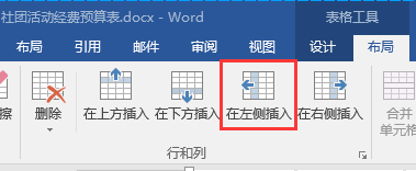 (3)将鼠标定位在表格最左侧一列中的任一单元格内,单击“表格工具 ”→“布局 ”选项卡→“行和列”命令组,选择“在左侧插入”命令(图3),根据样张,合并相应的单元格,并输入文字内容。
