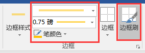 选中整个表格或表格的部分单元格区域,在“表格工具 ”→“设计”选项卡→“边框”命令组中,可单击“边框样式”在下拉列表中选择一种主题样式,也可自行设置边框的线型、粗细和颜色,边框样式设置完成后,单击“边框”命令,在下拉列表中选择边框类型即可为所选区域应用边框效果,也可通过“边框刷”工具自行在表所选区域中绘制边框效果。