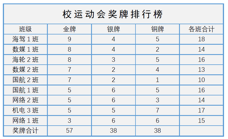 (2)将表格第一行文字“校运动会奖牌排行榜”设置为小三号、黑体、字间距加宽1.5磅;统计各班金、银、铜牌合计,各类奖牌合计填入相应的行和列;以金牌为主要关键字、降序,银牌为次要关键字、降序,铜牌为第三关键字、降序,对9个班进行排序。