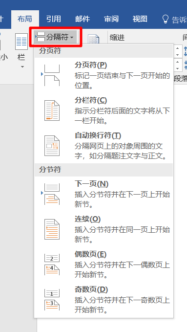 1.分页符和分节符