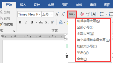 (2)选中1.1节正文部分,单击“开始”→“字体”命令组→“更改大小写”命令,选择“全角”命令(图2), 将第一章正文的符号设置为全角显示。
