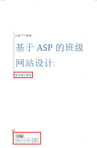 (2)将鼠标定位在“摘要”前,单击插入”→“页面”命令组→“封面”按钮, 在下拉列表中,选择“边线型”。 输入副标题“毕业设计报告”,在“日期”处选择论文完成日期,如图1所示,删除原文档第一页内容。
