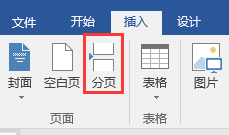 2)将鼠标定位在需要插入分页符的位置, 单击“插入”→“页面”命令组→“分页”命令。