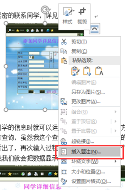(1)选中要插入题注的对象(图片、表格等),点击鼠标右键,在打开的快捷菜单中选择“插入题注”命令或单击“引用”→“题注”命令组→“插入题注”命令。