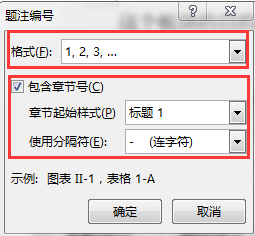 (3)单击“编号”按钮,在弹出的“题注编号”对话框中可设置编号的样式,如果选中“包含章节号”,可以使题注中包括章节号。