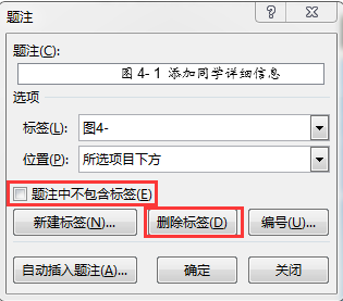 (4)如果选中“题注中不包含标签”复选框,则题注中将不显示标签的字样,只显式编号和用户输入的表格名称。如果要删除不要的标签,可以选中该标签后,单击“删除标签” 按钮即可。