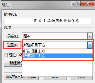 (5)单击“位置”下拉按钮,在位置列表中可以选择“所选项目上方”或“所选项目下方”。设置完毕后单击“确定”按钮即可。题注的格式可通过样式进行设置。
