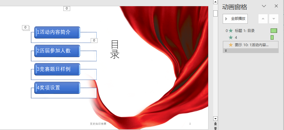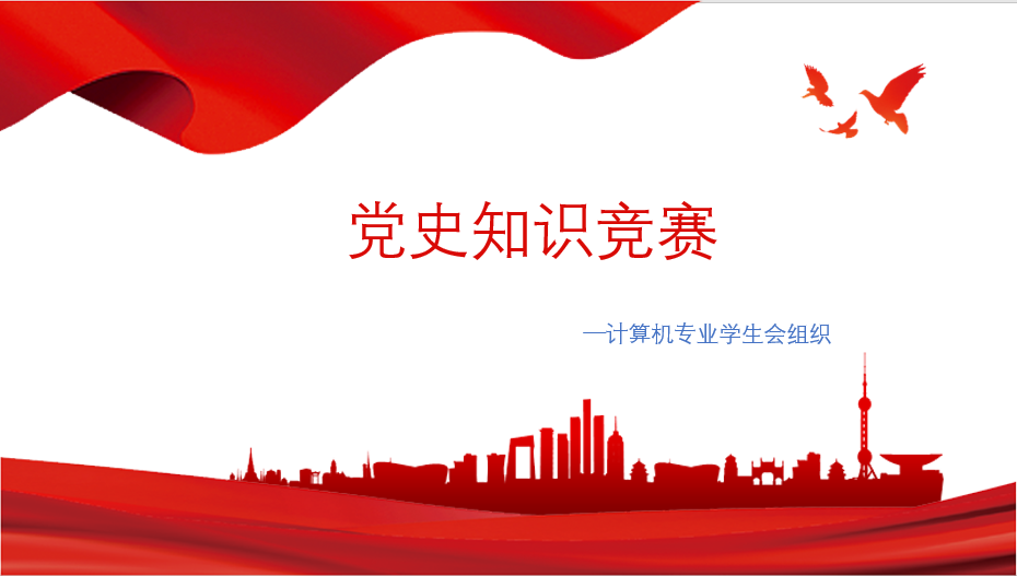 开展党史学习教育,是坚定信仰信念、在新时代坚持和发展中国特色社会主义的必然要求。心有所信,方能行远,为了更好的学习党史、国史,***职业技术学院计算机专业准备举行党史知识竞赛。为了清楚说明竞赛情况,请同学们设计制作“党史知识竞赛”演示文稿。