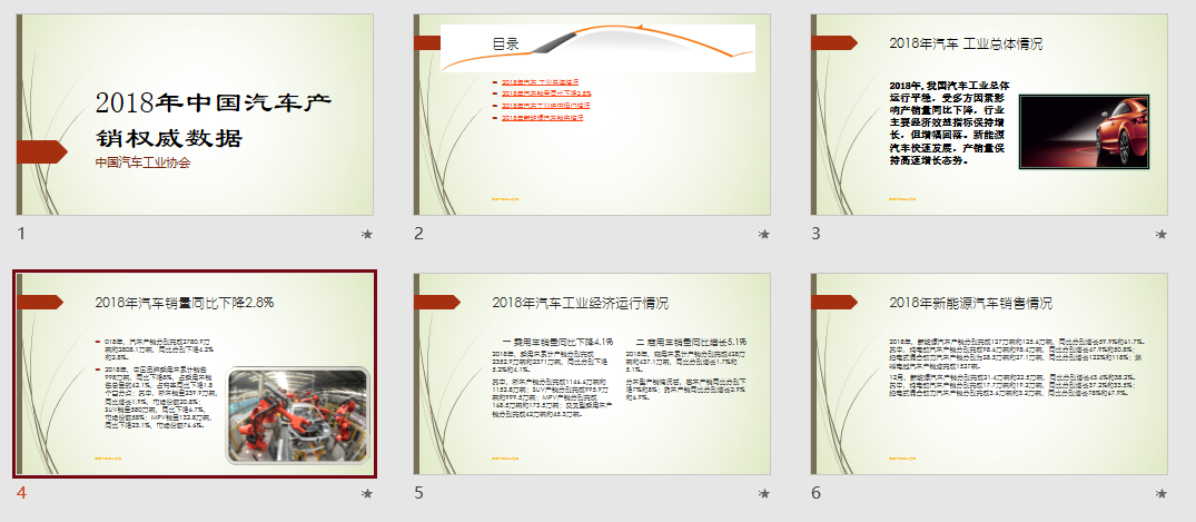 (2)设置第一张幻灯片版式为“标题幻灯片”,主标题为“2018年中国汽车产销权威数据”,副标题为“中国汽车工业协会”;主标题设置为隶书、80磅字,副标题为微软雅黑32磅字、 字体颜色为“深红,个性色1,深色25%"。