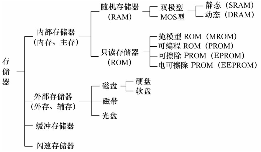 (2)MOS型存储器:按工艺制成,可分为静态存储器(SRAM)和动态存储器(DRAM)。动态存储器的存储内容需定时刷新。