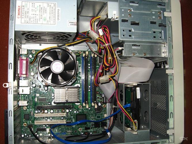 主机包括主板、CPU、内存、电源、硬盘驱动器(硬盘)、光盘驱动器和插在总线扩展槽上的各种系统功能扩展卡,它们都安装在主机箱里。