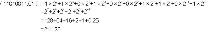 例:二进制数11010011.01转换为十进制数,如图5-4-1所示。