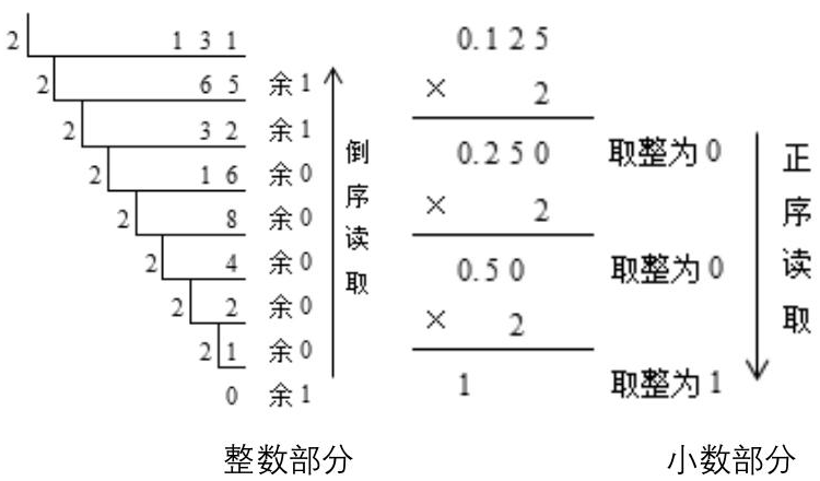 (131.125)10=(10000011.001)2,如图5-4-2所示。