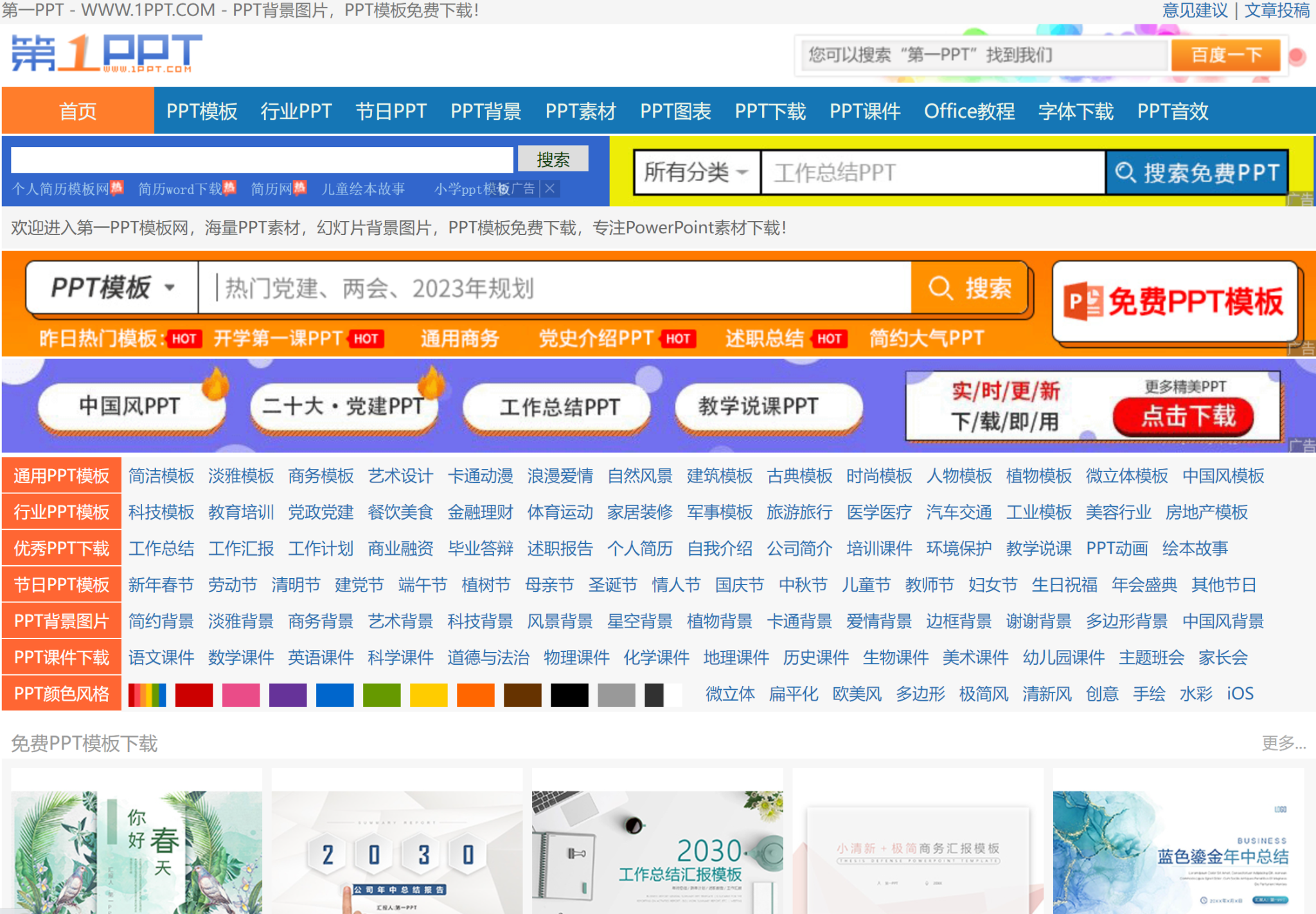 该网站不仅提供了丰富的PPT原创教程、原创模板、原创素材,同时还不断从国内外PPT同行网站收集各类PPT资源,免费提供给网站用户。在做项目汇报、论文答辩、成果展示时,可以在这里寻找自己中意的PPT模板,并在此基础上进行修改。如图6-1-2所示。