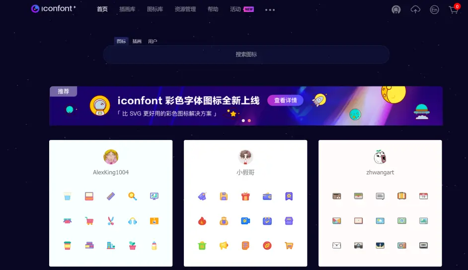 该网站是国内一款功能强大且图标内容很丰富的矢量图标库。它由阿里巴巴团队倾力打造,能够为用户提供矢量图标下载、在线存储、格式转换等功能。如图6-1-4所示。