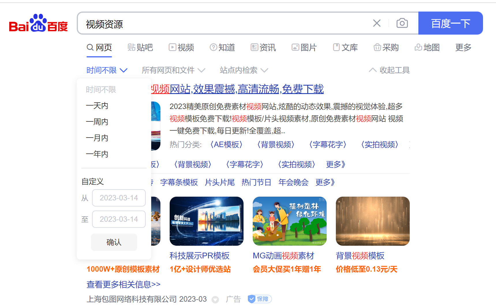 音频是记录声音信息的数据文件,包括音乐、语音和各种音效,常见的音频文件格式有WAV、MP3、MID等 。按照“素材名称+音频类型”格式输入关键词搜索。也可利用专门的音频搜索工具(如百度MP3搜索http://mp3.baidu.com/)进行查找。