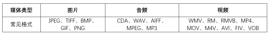 除以上常用文件格式以外,还有常见的媒体文件格式如表6-2-1所示。