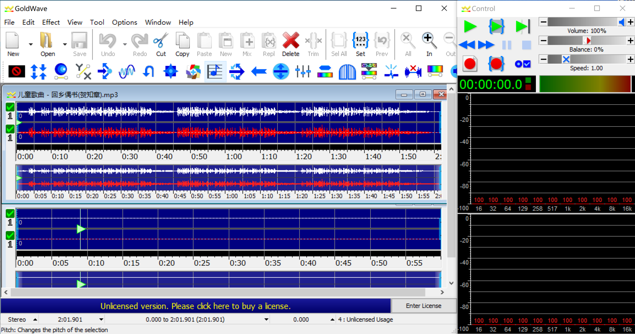 GoldWave 是一款易上手的专业级数字音频编辑软件。从最简单的录制和编辑到最复杂的音频处理、恢复、增强和转换等工作,它都能完成。GoldWave软件界面如图6-3-4所示。