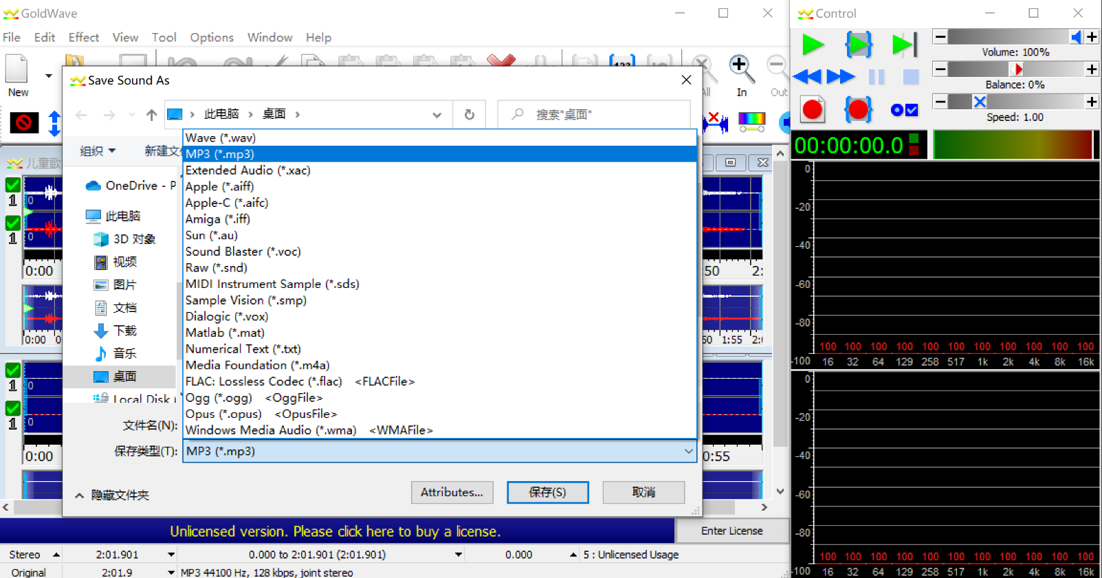 利用GoldWave进行音频格式转换的操作步骤如下。