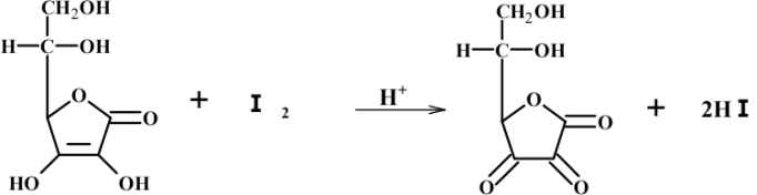 维生素 C 分子结构中的连二烯醇基具有较强的还原性,在酸性溶液中,被 碘定量地氧化,因此,可以用碘量法测定其含量。