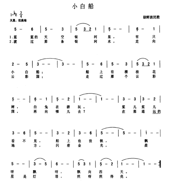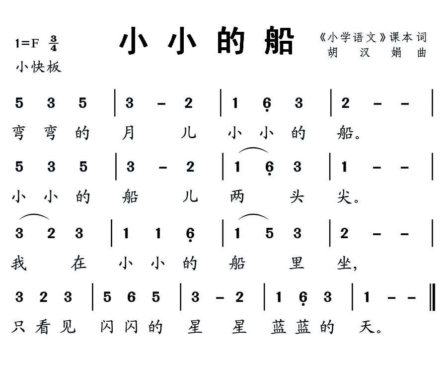2.请用《小小的船》的旋律演唱歌曲《小白船》。