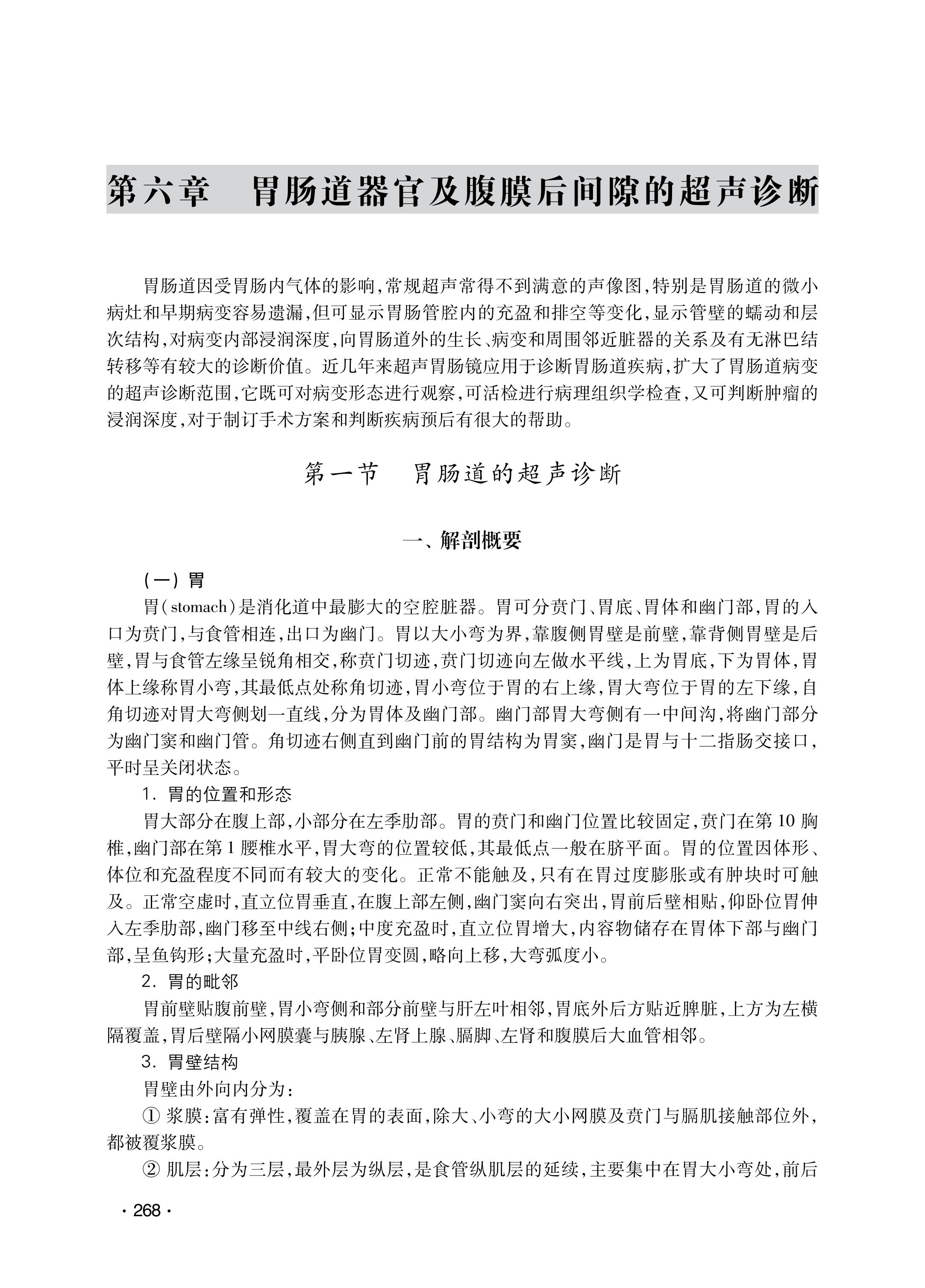 6 胃肠道器官及腹膜后间隙的超声诊断
