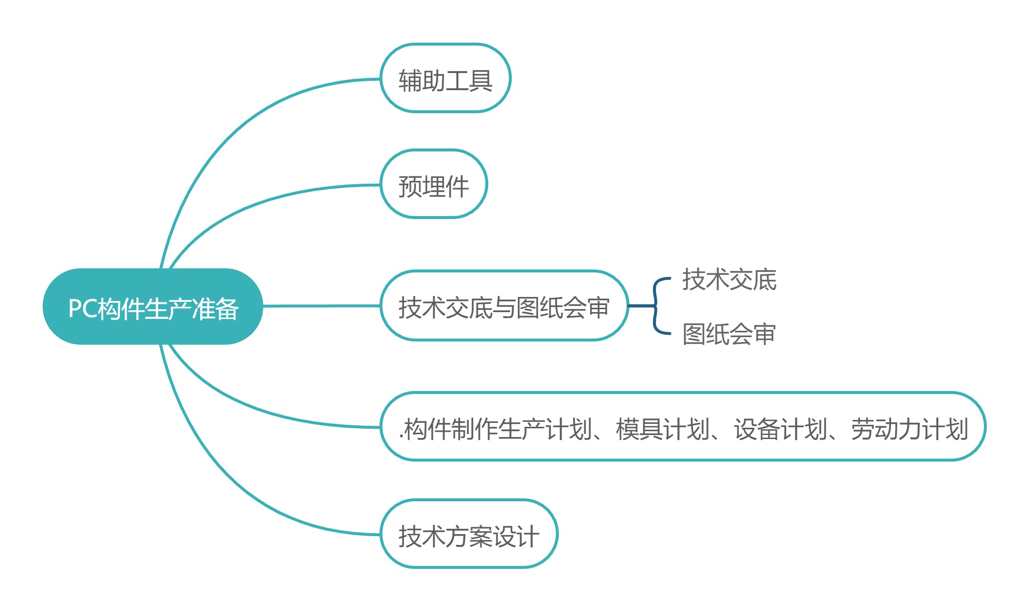 主要任务:技术交底与图纸会审、生产计划、模具计划、材料构配件工具、设备计划、构件场地分配计划、技术方案、劳动力计划、项目管理质量计划、文明生产计划、灌浆试验及其他试验预习。