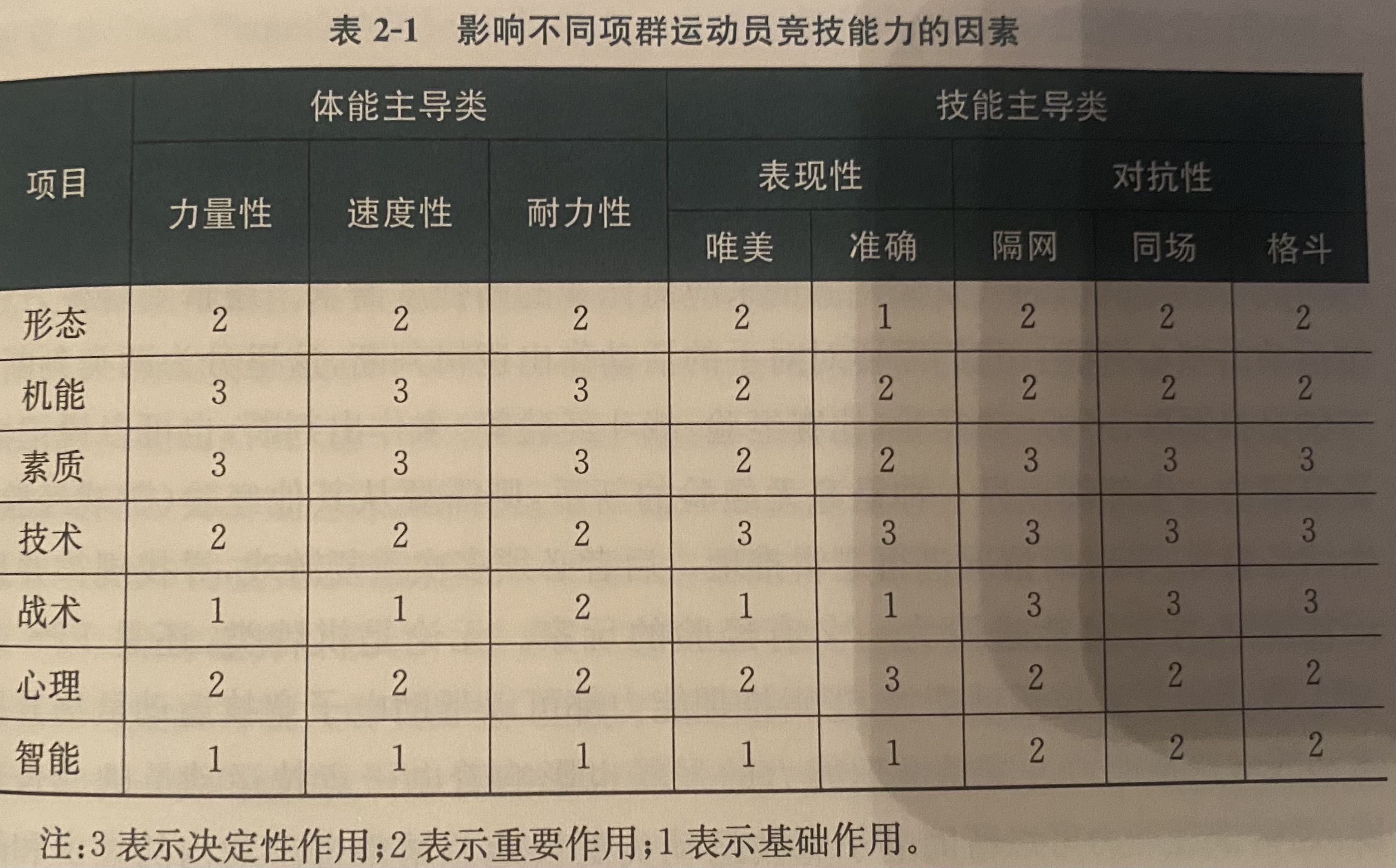 不同因素对运动员竞技能力所起作用依项群特点的不同而有明显的区别。