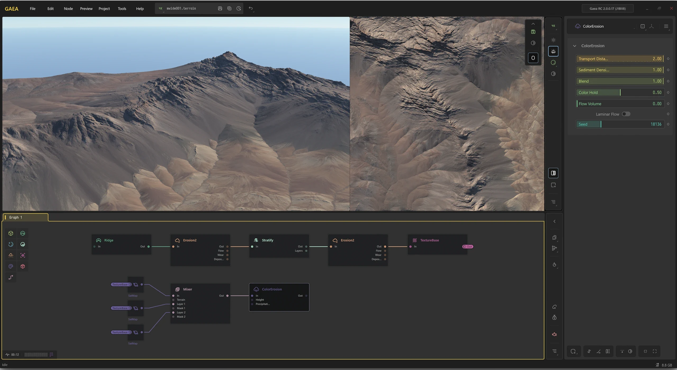 预览和调整:实时预览地形的生成结果,并根据需要调整节点的参数。Gaea提供了实时的视觉反馈,使用户能够即时看到他们的调整效果。