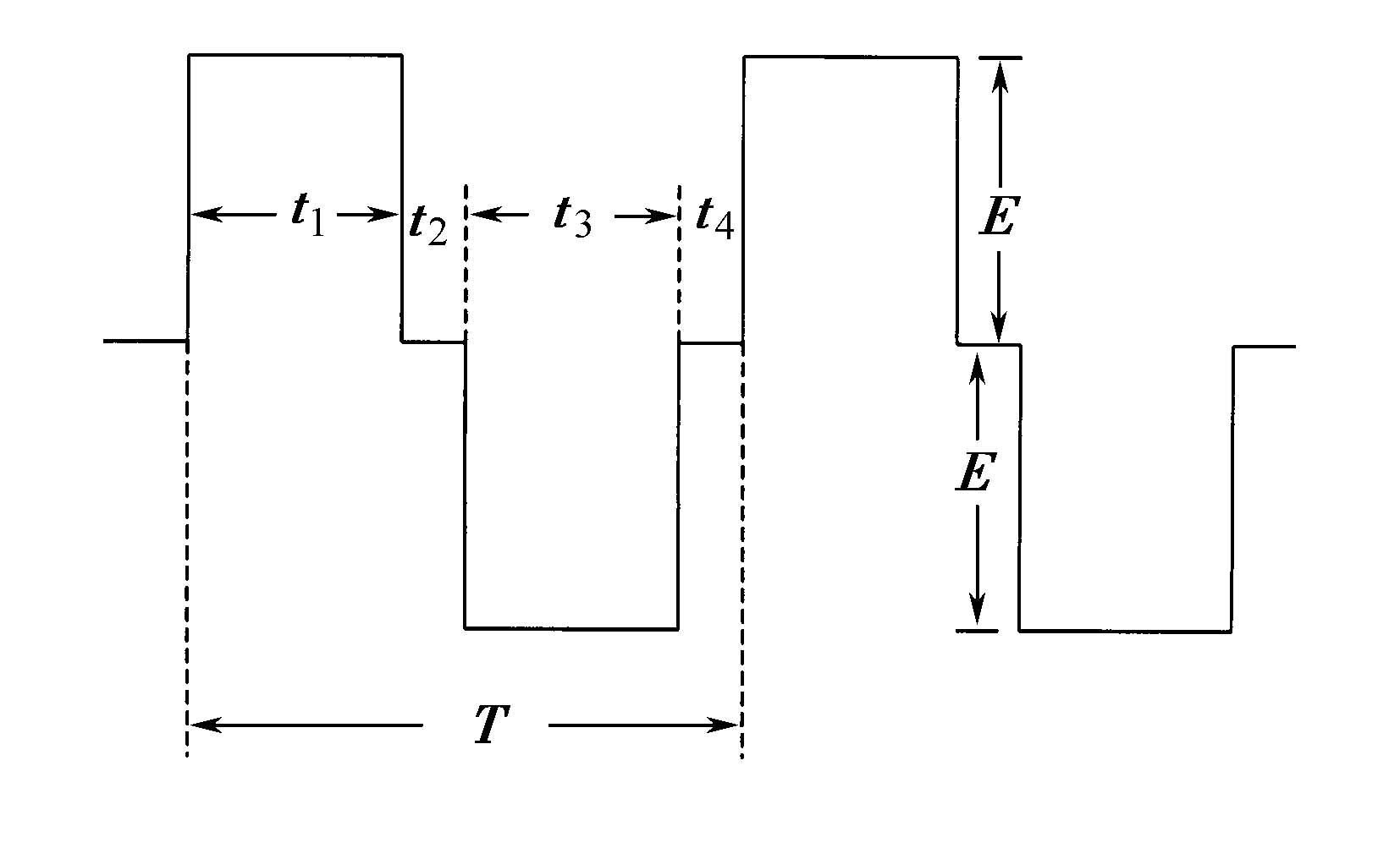 图中k1~k4为电子开关,Z为负载阻抗。本电路的基本特点是适当控制四只电子开关的通断来实现直流到交流的变换。若电路上能确保四只电子开关按以下顺序通断,则在负载Z上的电压波形就为正、负交替的矩形波,如图3-4所示。
