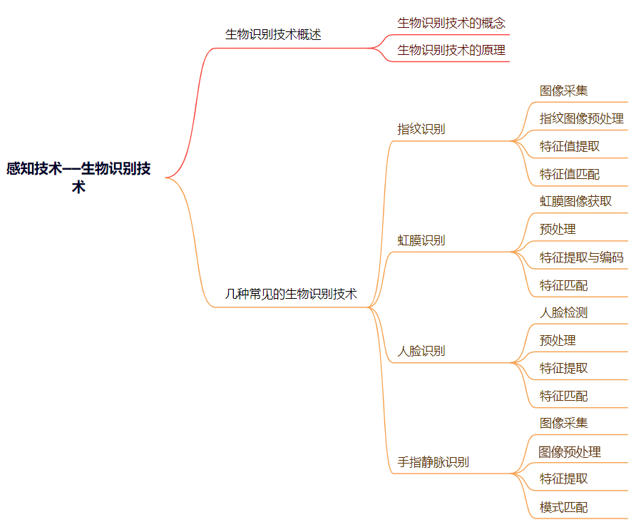 项目三 感知技术--生物识别技术----主要知识点分布的思维导图如下: