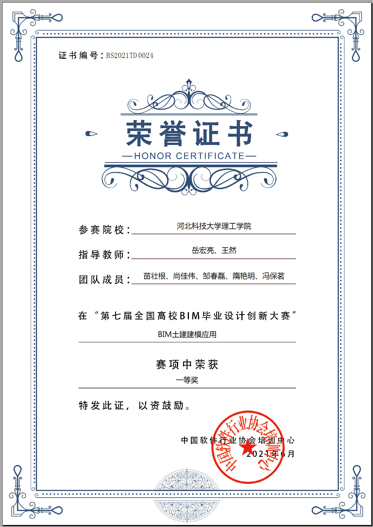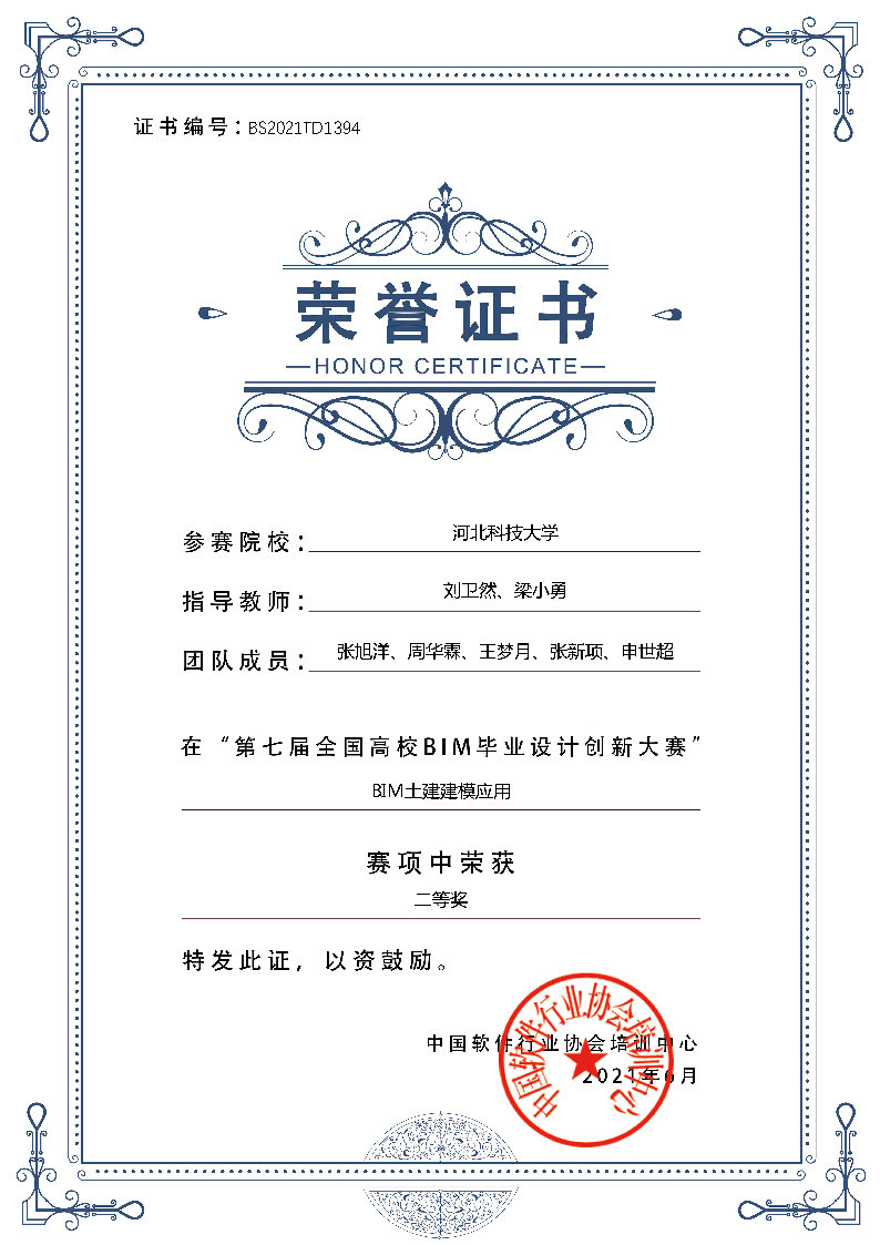2021年第七届全国高校BIM毕设设计创新大赛荣获一等奖一项,二等奖一项,三等奖一项