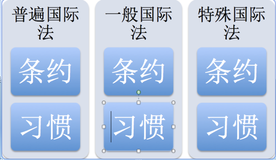P32第4段:一般来说,普遍国际法适用于世界范围内所有国家或整个国际社会,一般国际法适用于大多数国家或,特殊国际法或区域国际法适用于特定国家或区域社会。
