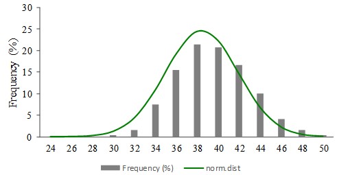 1. 数据存放在“资料”/“实践课数据”/“表2-4-计量分布”