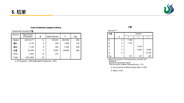 1. 掌握SPSS软件进行拉丁方设计试验方差分析;