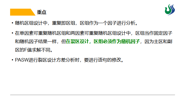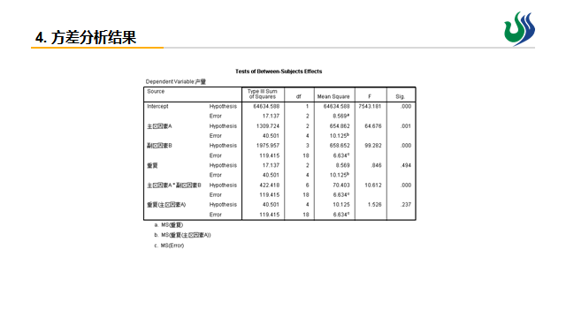 2. 掌握SPSS软件进行裂区设计试验方差分析。
