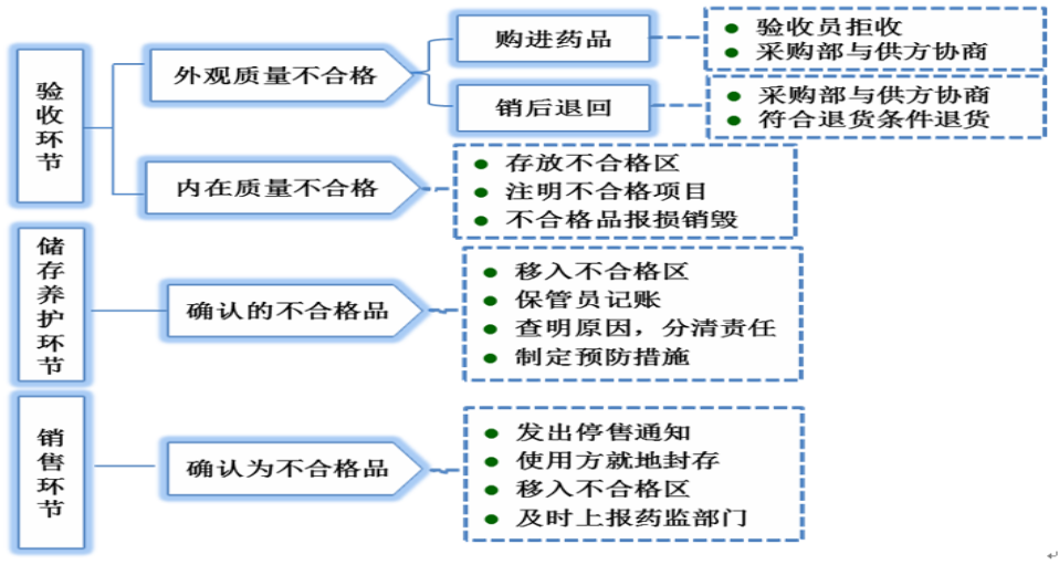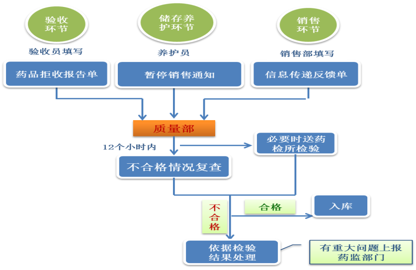 挂色标标志→计算机系统中锁定 →记录→报告质量部门(确认)。