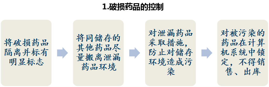 ① 内包装破碎,药品液体、气体、粉末泄漏时,迅速启动应急处置预案,采取隔离、清洗、通风、稀释、覆盖等安全处理措施。