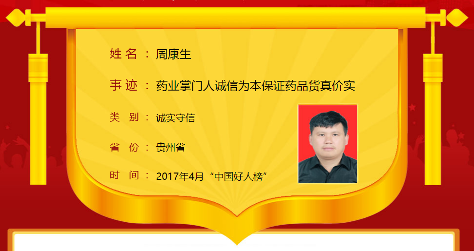周康生,男,43岁,贵州省健一生药业连锁有限责任公司董事长。