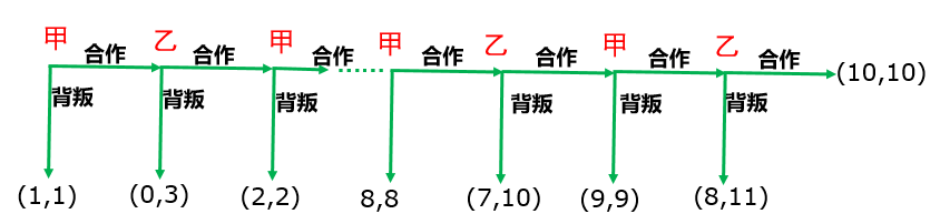 – 规则是:A、B两次决策为一组,第一次若A决策结束,A、B都得n;第二次若B决策结束,A得n-1,而B得n+2;